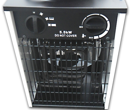 Das Heizgerät verfügt über eine zweistufige Leistungssteuerung zur bedarfsgerechten Dosierung der Heizstärke. Eine integrierte Thermostatsteuerung regelt stufenlos die Temperatur des Warmluftstroms. Zudem verfügt dieses Elektroheizgebläse neben einen Überhitzungsschutz über einen mit Thermoschutz versehenen Gebläsemotor. Das Heizgerät hat eine Heizleistung von bis zu 5,5 kW und wird an einen Kraftstromanschluss 400V mit 16 Ampere Absicherung angeschlossen.