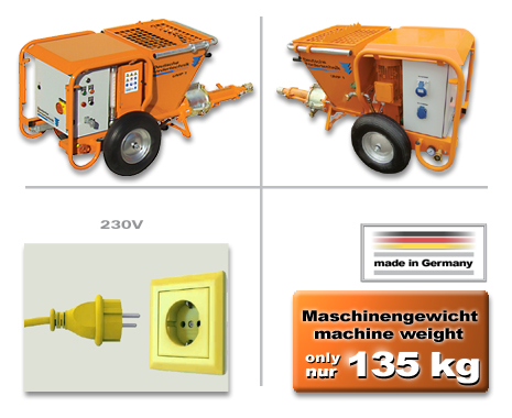 Mischpumpe 135 kg leicht, universell einsetzbar mit Verputzausrüstung, für den Betrieb mit 230V, 16A. Einzusetzen für Verputzarbeiten, Estricharbeiten, Verfugungs- oder Verfüllungsarbeiten. Qualitativ hochwertige Misch- und Förderpumpe made in Germany für viele Einsatzgebiete am Bau. Betrieb mit einer haushaltsüblichen 230V Stromversorgung.